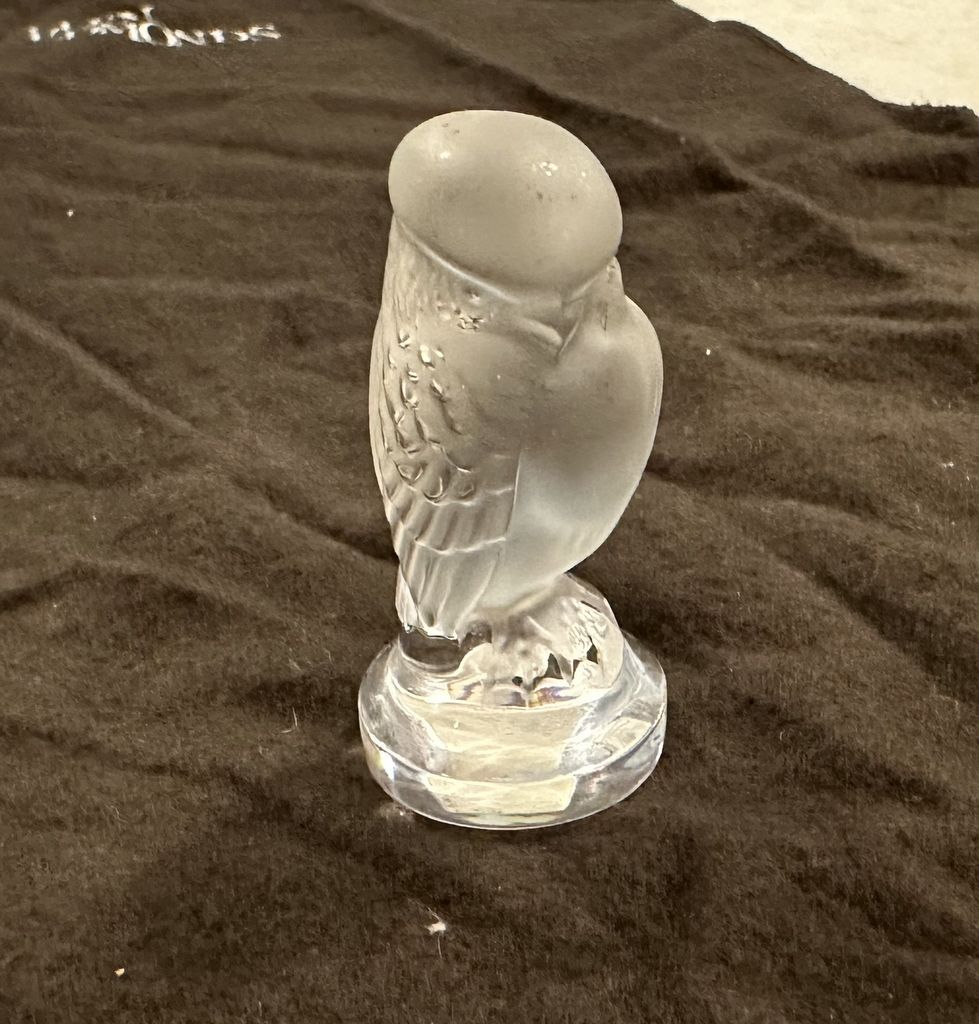 Lalique Crystal Raspace Bird of Prey Hawk Figurine, 2 1/2"h, Location Front Left Shelves Lalique Crystal Raspace Bird of Prey Hawk Figurine, 2 1/2"h, Location Front Left Shelves