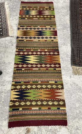 1'11 x 6'4 Kilim Turkish Wool Runner, good condition. Location Rug Rack 1'11 x 6'4 Kilim Turkish Wool Runner, good condition. Location Rug Rack