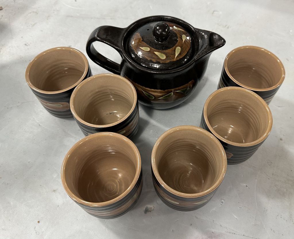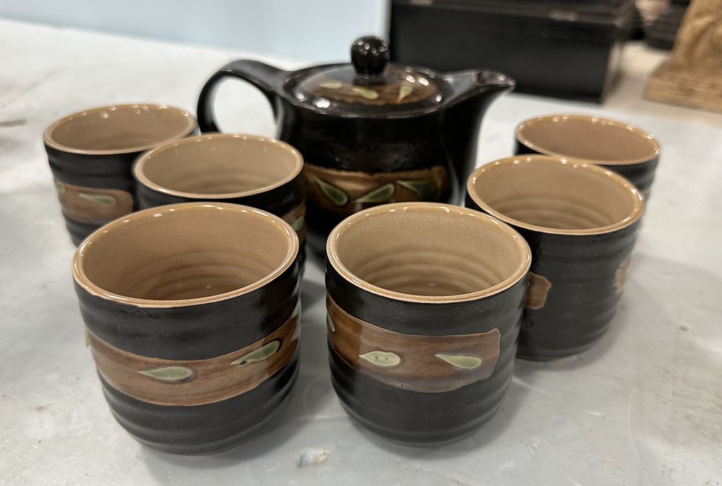 Chinese Pottery Tea Set, hand painted, pitcher, 6 cups, Location Left Office 1 Chinese Pottery Tea Set, hand painted, pitcher, 6 cups, Location Left Office 1