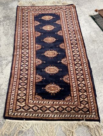 3' x 5'5 Bokhara Jeneva Blue Wool Runner, good condition. Location Rug Rack 3' x 5'5 Bokhara Jeneva Blue Wool Runner, good condition. Location Rug Rack