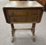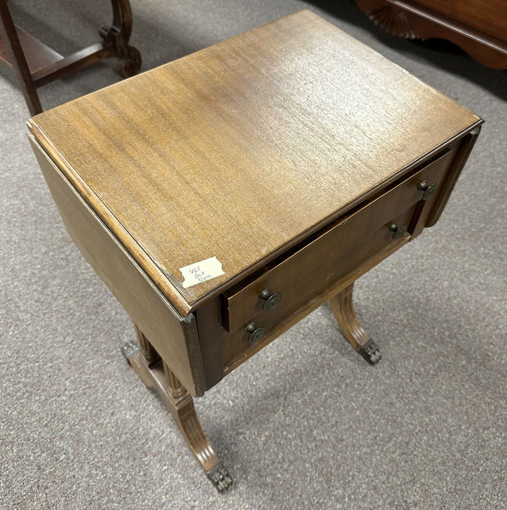 Duncan Phyfe Drop Side Table, two drawers, needs some tightening, has wear, 26"h., 19"w. Location Row 6 Duncan Phyfe Drop Side Table, two drawers, needs some tightening, has wear, 26"h., 19"w. Location Row 6