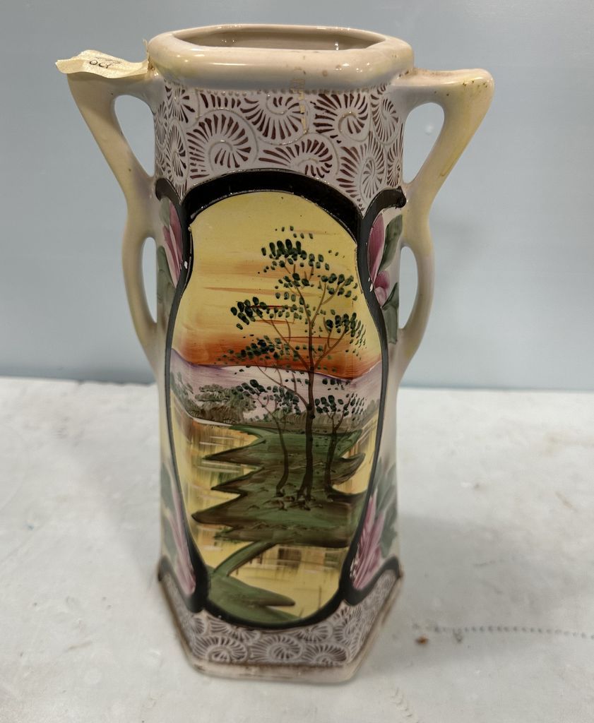 Antique Hand Painted Nippon Cameo Vase, 13"h, Location Left Office 1v Antique Hand Painted Nippon Cameo Vase, 13"h, Location Left Office 1v