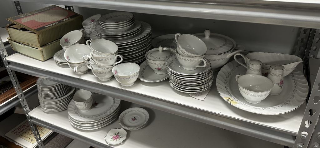 Set of Royal Swirl Fine China Set, made in Japan, Location Back Metal Shelves Set of Royal Swirl Fine China Set, made in Japan, Location Back Metal Shelves