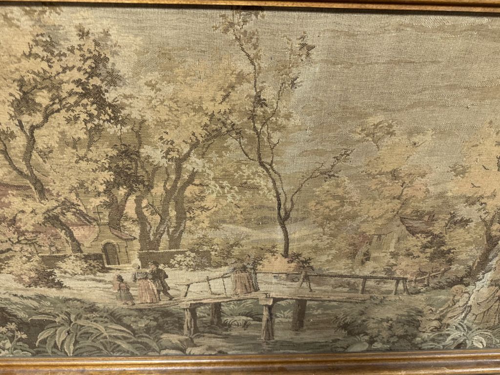 Large Framed Antique Tapestry, 30"h., 73"long, Location Back Wall Large Framed Antique Tapestry, 30"h., 73"long, Location Back Wall