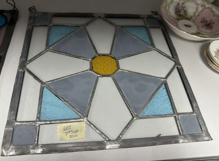 12" x 12" Leaded Stained Glass Panel, Location Left Back Metal Shelves 12" x 12" Leaded Stained Glass Panel, Location Left Back Metal Shelves