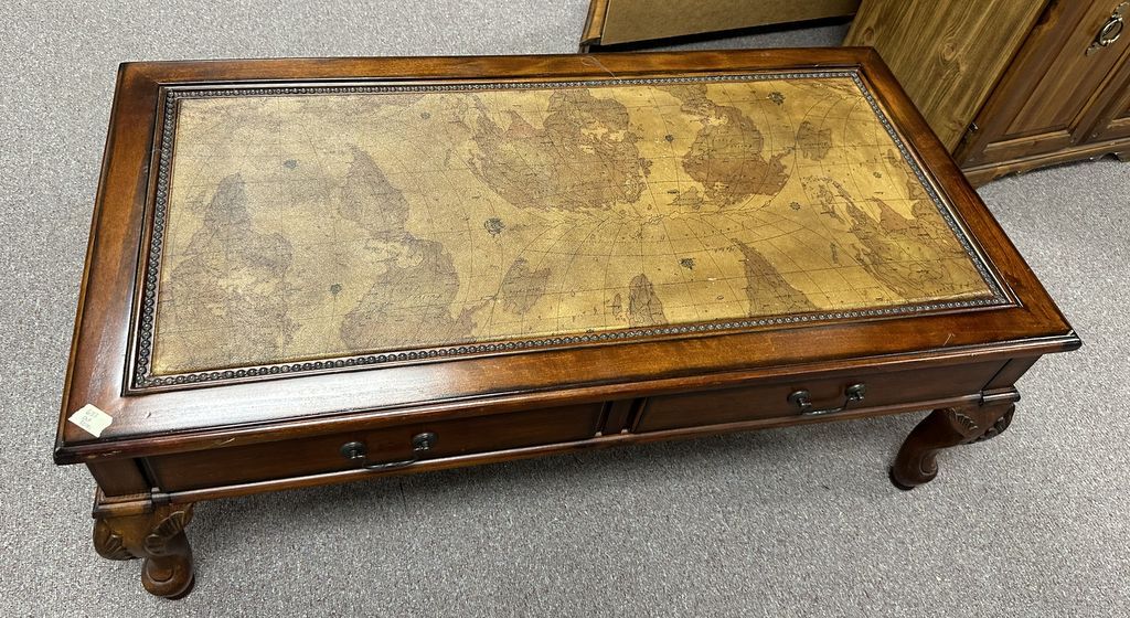 Cherry Traditional Style Coffee Table, faux drawers, 18"h., 50"w, Location Row 4 Cherry Traditional Style Coffee Table, faux drawers, 18"h., 50"w, Location Row 4