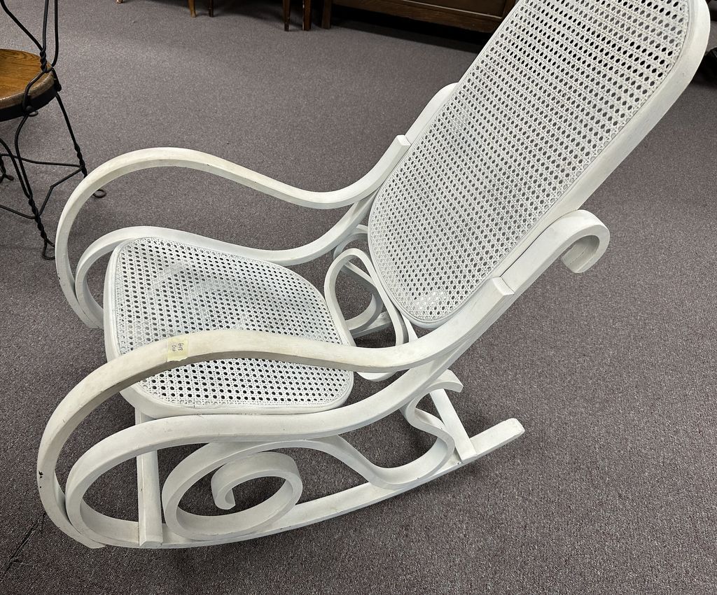White Painted Victorian Caned Rocker, good condition White Painted Victorian Caned Rocker, good condition