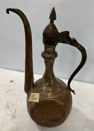 Persian Vintage Brass Pitcher, 14"h, Location Left Back Metal Shelves Persian Vintage Brass Pitcher, 14"h, Location Left Back Metal Shelves