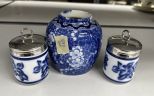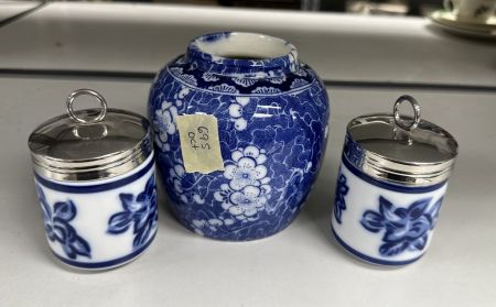 695 Blue and White Vase and Egg Coddlers