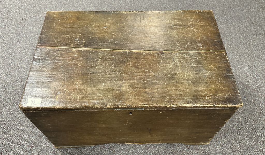 Primitive Wood Storage Box, lift top, 13"h., 24"w, Location Row 6 Primitive Wood Storage Box, lift top, 13"h., 24"w, Location Row 6
