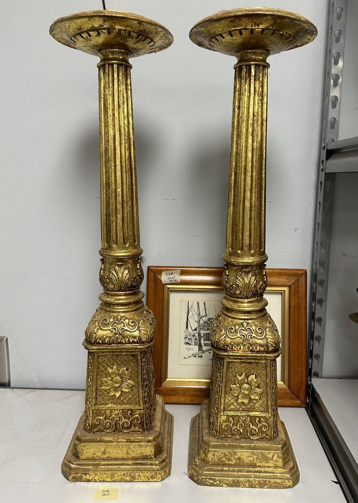 Pair of Gold Gilt Candle Holders, 25"h, Location Front Left Shelves Pair of Gold Gilt Candle Holders, 25"h, Location Front Left Shelves