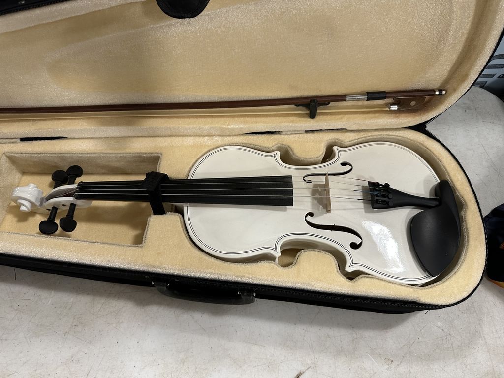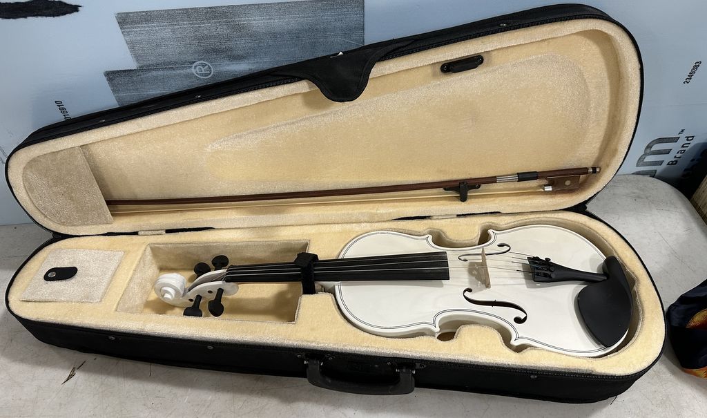 Crescent White Violin, in case, strings won't tightening, Location Left Office 1 Crescent White Violin, in case, strings won't tightening, Location Left Office 1