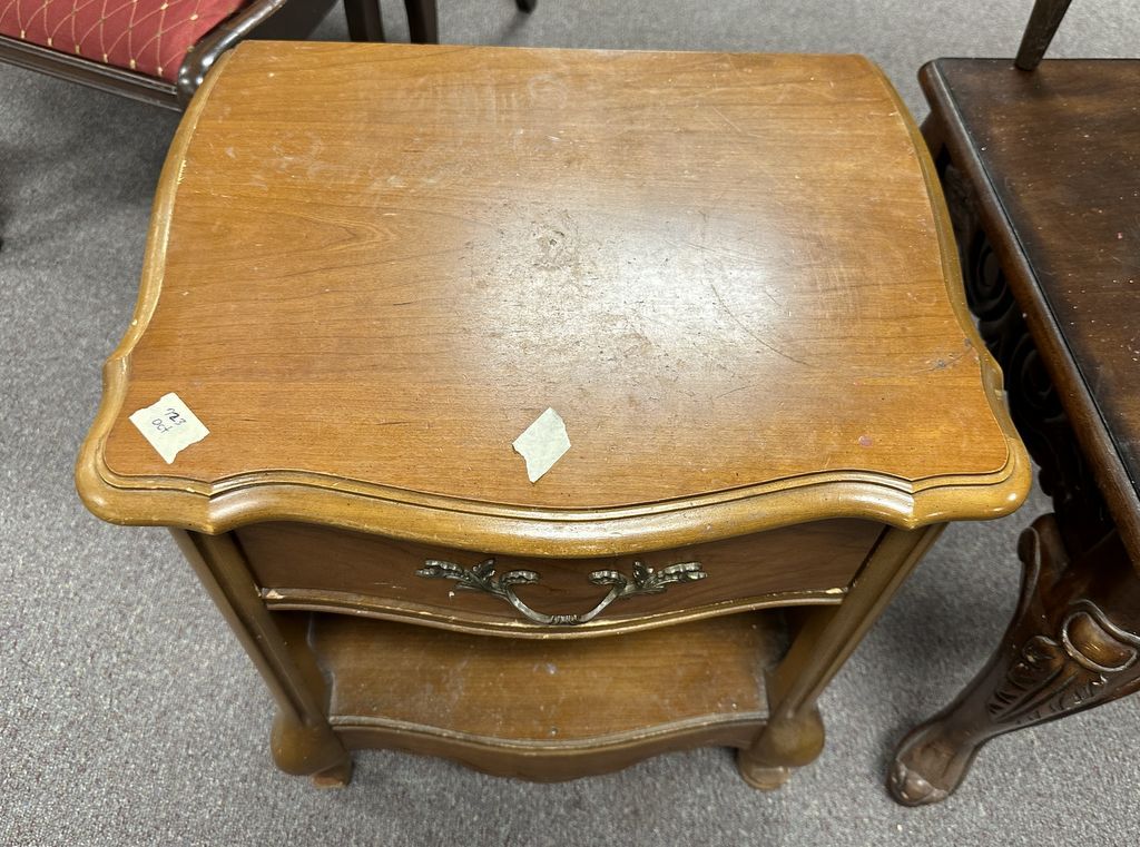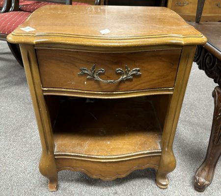 Late 20th Cherry Queen Anne Side Table, single drawer, open front, 24"h. ,20"w. Location Row 5 Late 20th Cherry Queen Anne Side Table, single drawer, open front, 24"h. ,20"w. Location Row 5