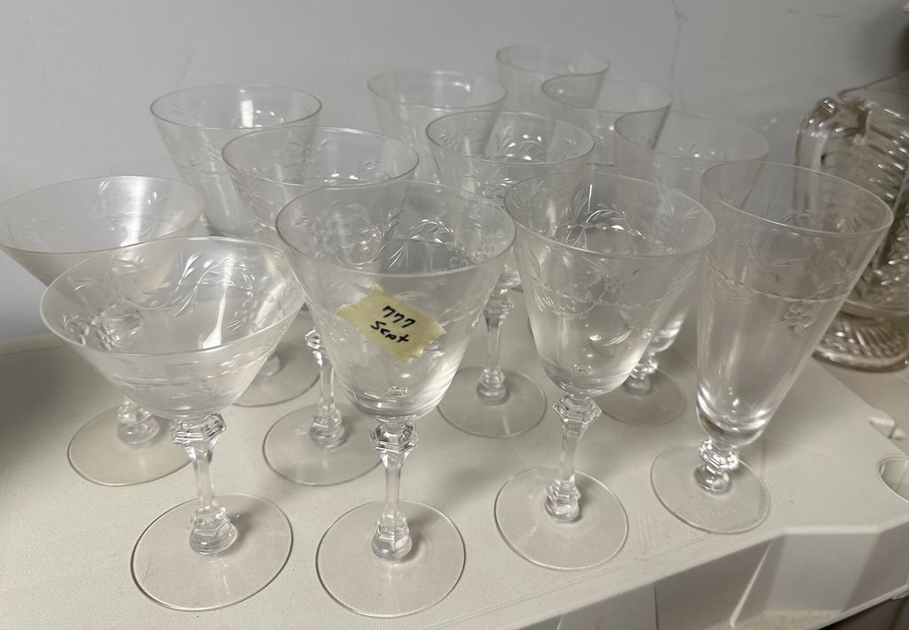 Group of Etched Wine Stems, Location Left Office 1 Group of Etched Wine Stems, Location Left Office 1