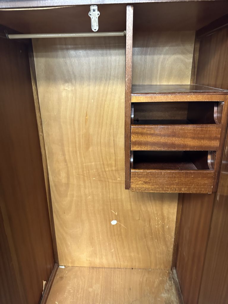 English Burl Mahogany Queen Anne Wardrobe, hanging rod, two door, 73"h, 36"w, Location Row 5 English Burl Mahogany Queen Anne Wardrobe, hanging rod, two door, 73"h, 36"w, Location Row 5