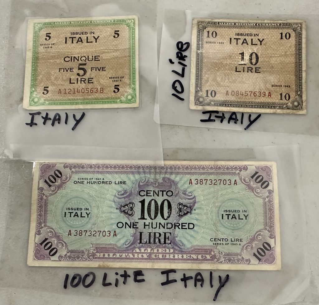 788 Italy 10, 5 Libre and 100 Lite Italy Notes
