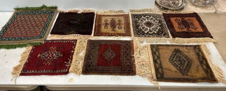 Eight Small Persian Wool Rugs, 1' x 1'2, Location Left Back Metal Shelves Eight Small Persian Wool Rugs, 1' x 1'2, Location Left Back Metal Shelves