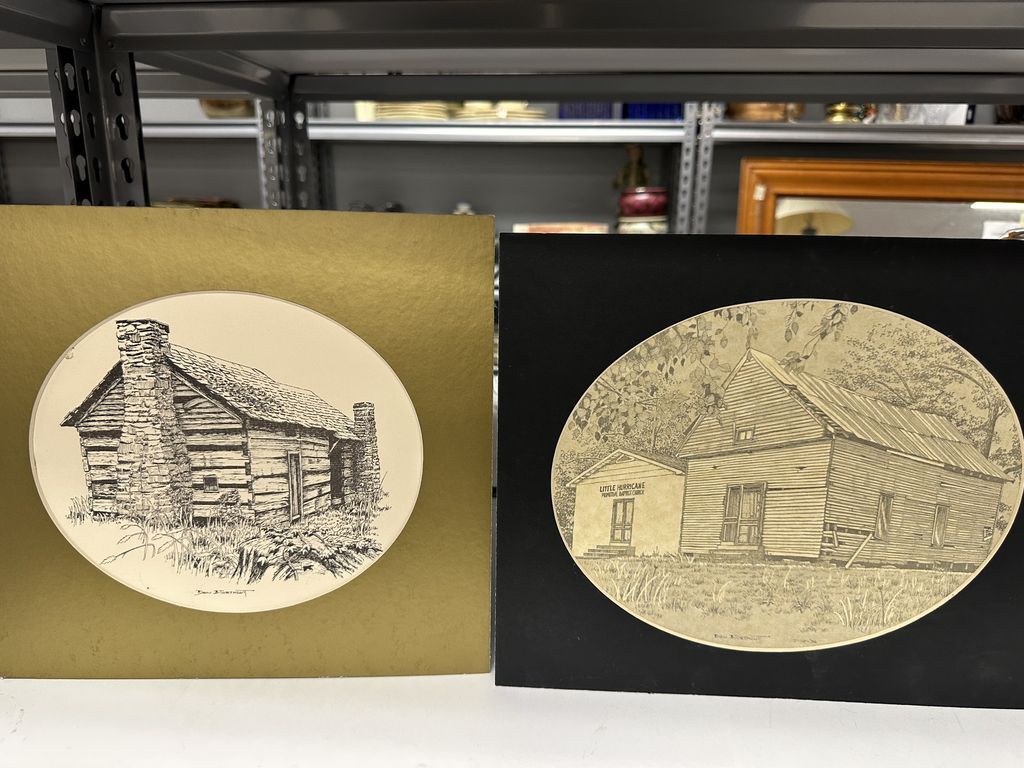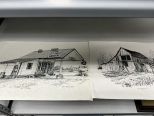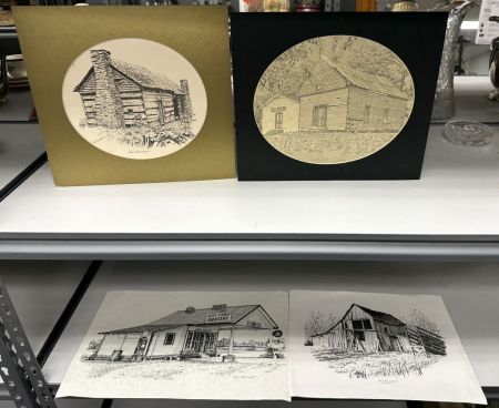 Four Piece Don Northcutt Sketch Prints, Location Right Metal Shelves Four Piece Don Northcutt Sketch Prints, Location Right Metal Shelves