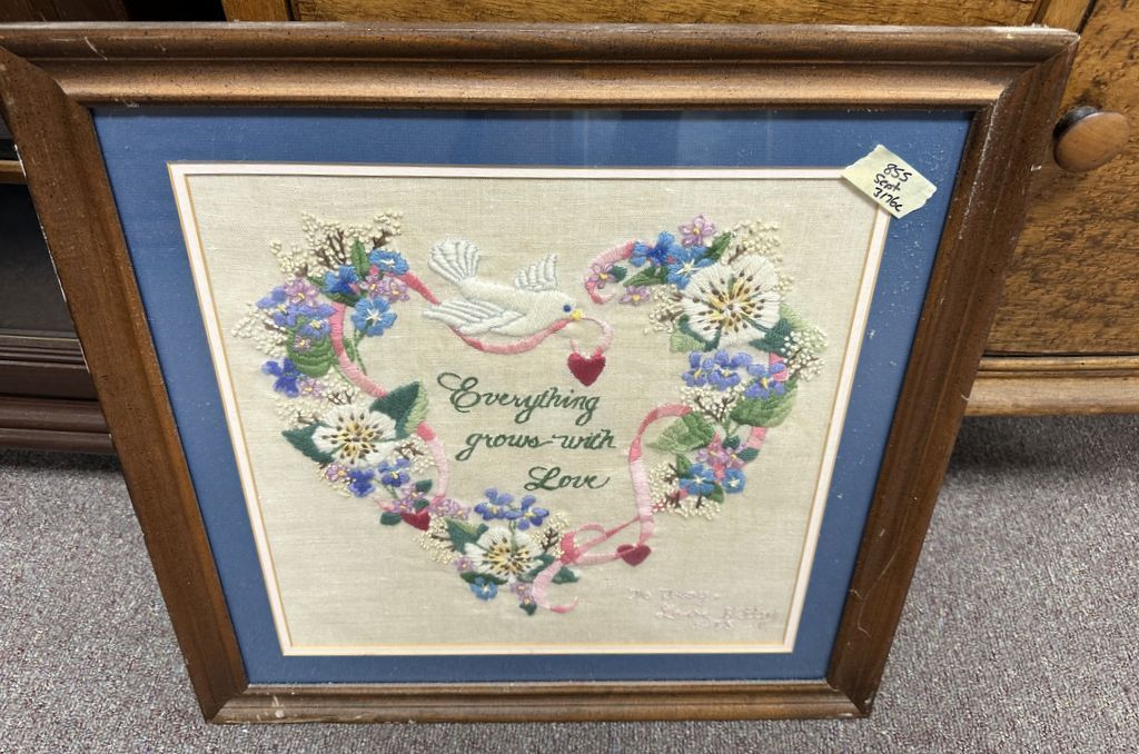 Every Grow with Love Sampler, signed, 21"h., 21"w, Location Back Wall Every Grow with Love Sampler, signed, 21"h., 21"w, Location Back Wall