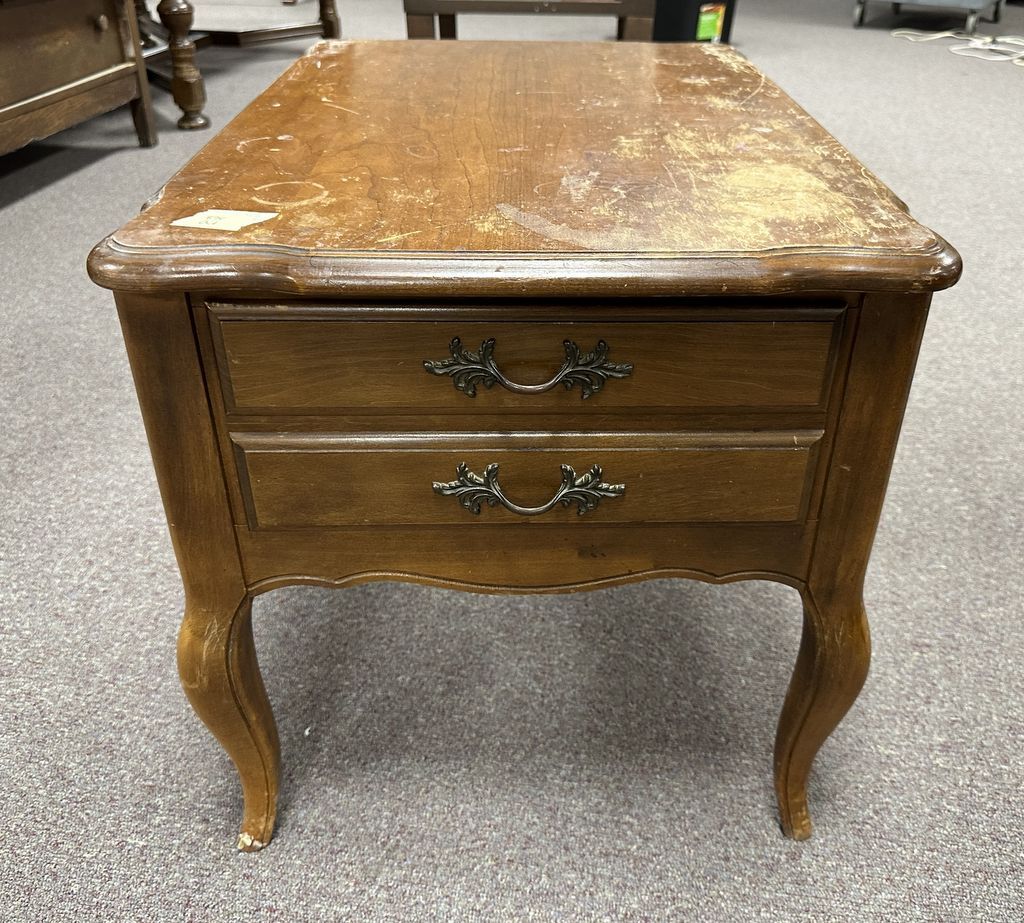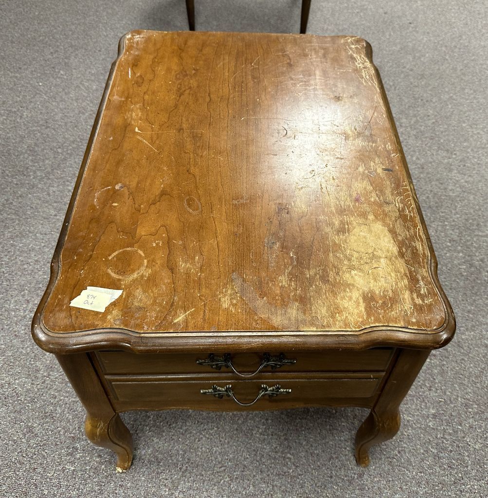 French Provincial Cherry Lamp Table, worn finish, 20"h., 20"w. Location Row 4 French Provincial Cherry Lamp Table, worn finish, 20"h., 20"w. Location Row 4