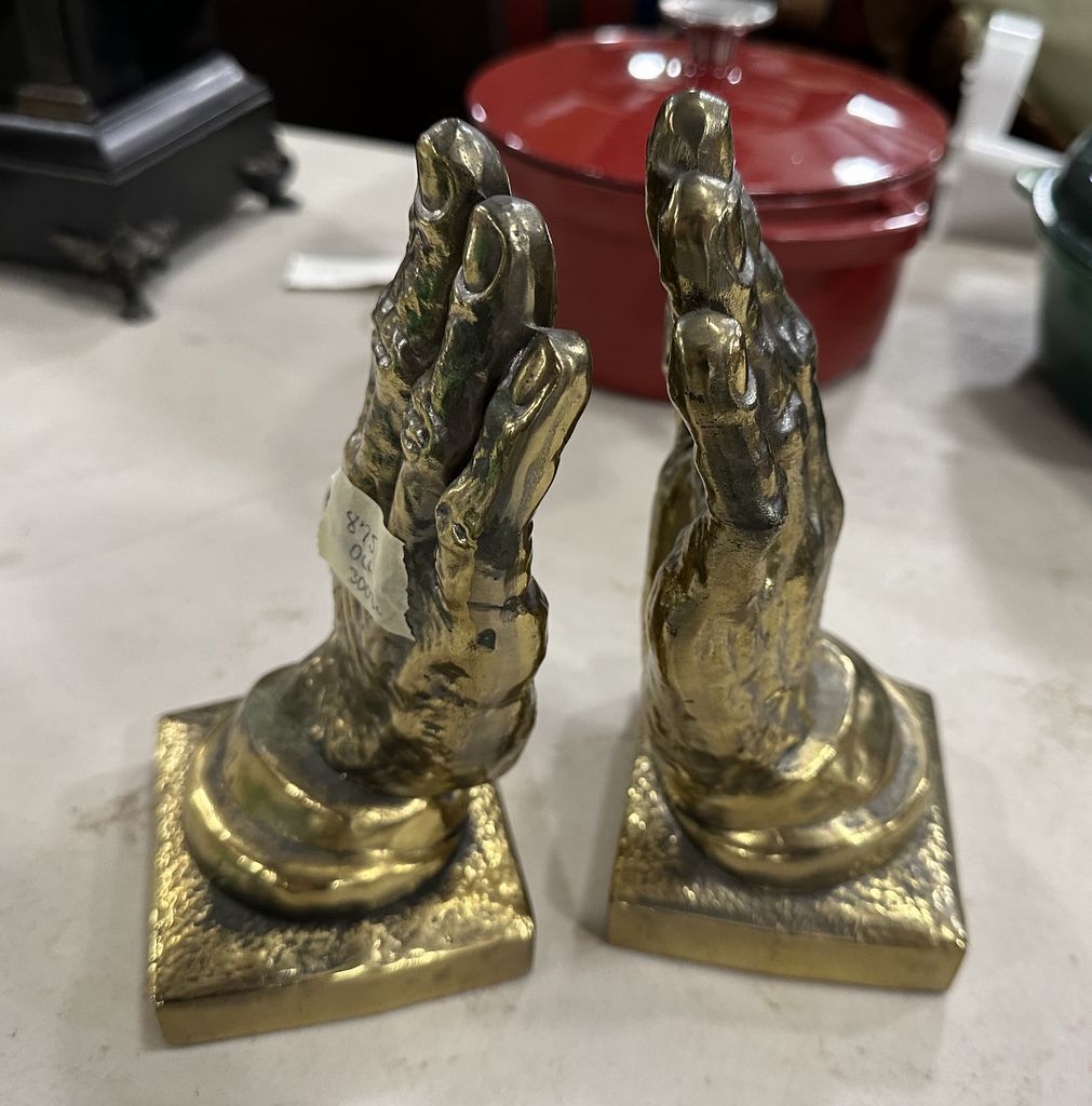 Pair of Brass Praying Hands Sculptures, Location Left Office 1 Pair of Brass Praying Hands Sculptures, Location Left Office 1