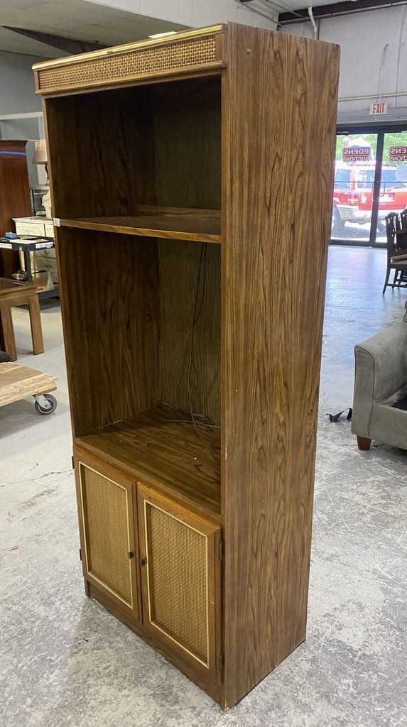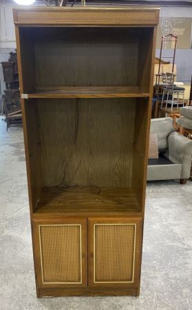 Broyhill Pressed Wood Bookshelf, Two Door, needs leveling, 76"h., 30"w. Location Row 6 Broyhill Pressed Wood Bookshelf, Two Door, needs leveling, 76"h., 30"w. Location Row 6
