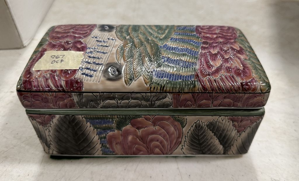 Chinese Porcelain Trinket Box, Location Right Metal Shelves Chinese Porcelain Trinket Box, Location Right Metal Shelves