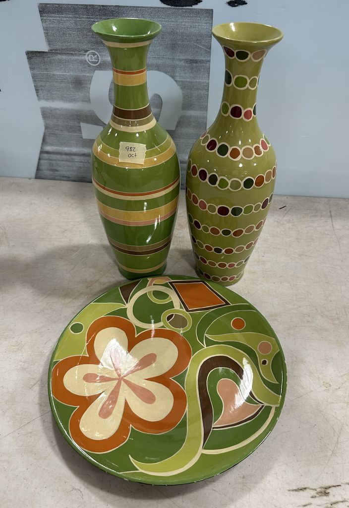 Toyo Ceramic Vases and Charger, Location Right Metal Shelves Toyo Ceramic Vases and Charger, Location Right Metal Shelves