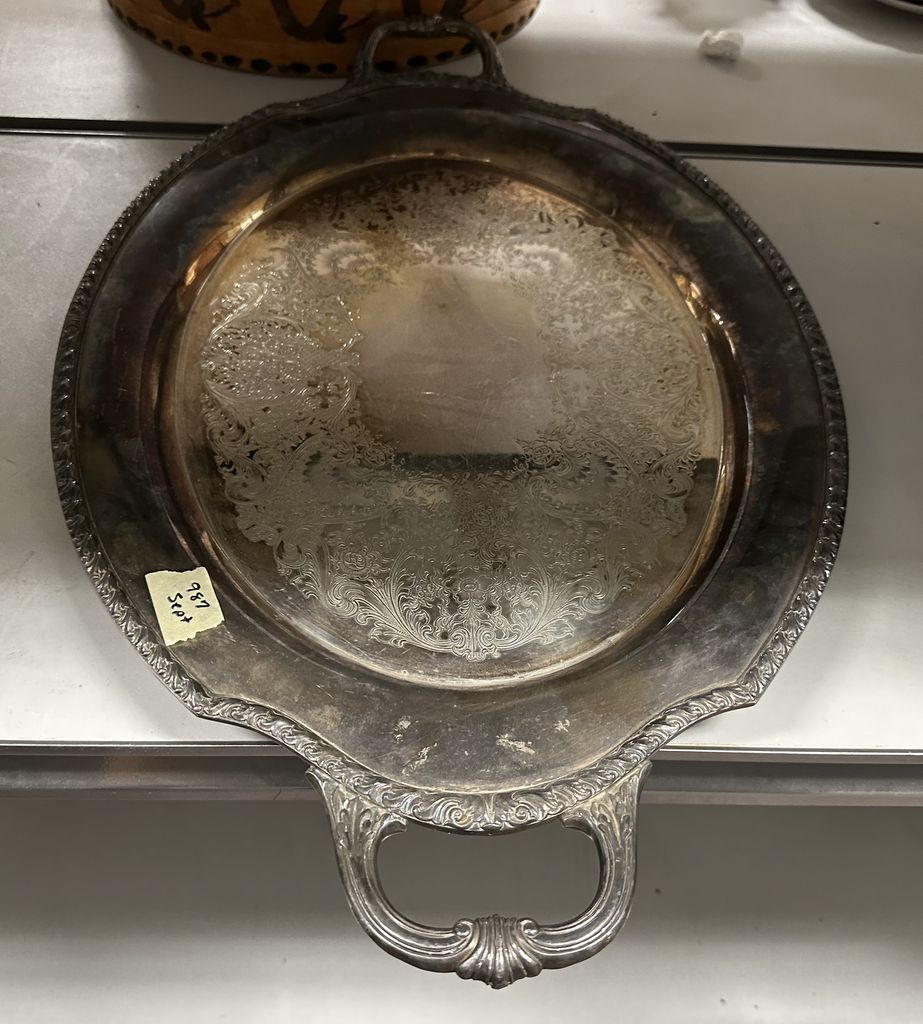 Wilfork Silver Plate Serving Tray, Location Right Metal Shelves Wilfork Silver Plate Serving Tray, Location Right Metal Shelves