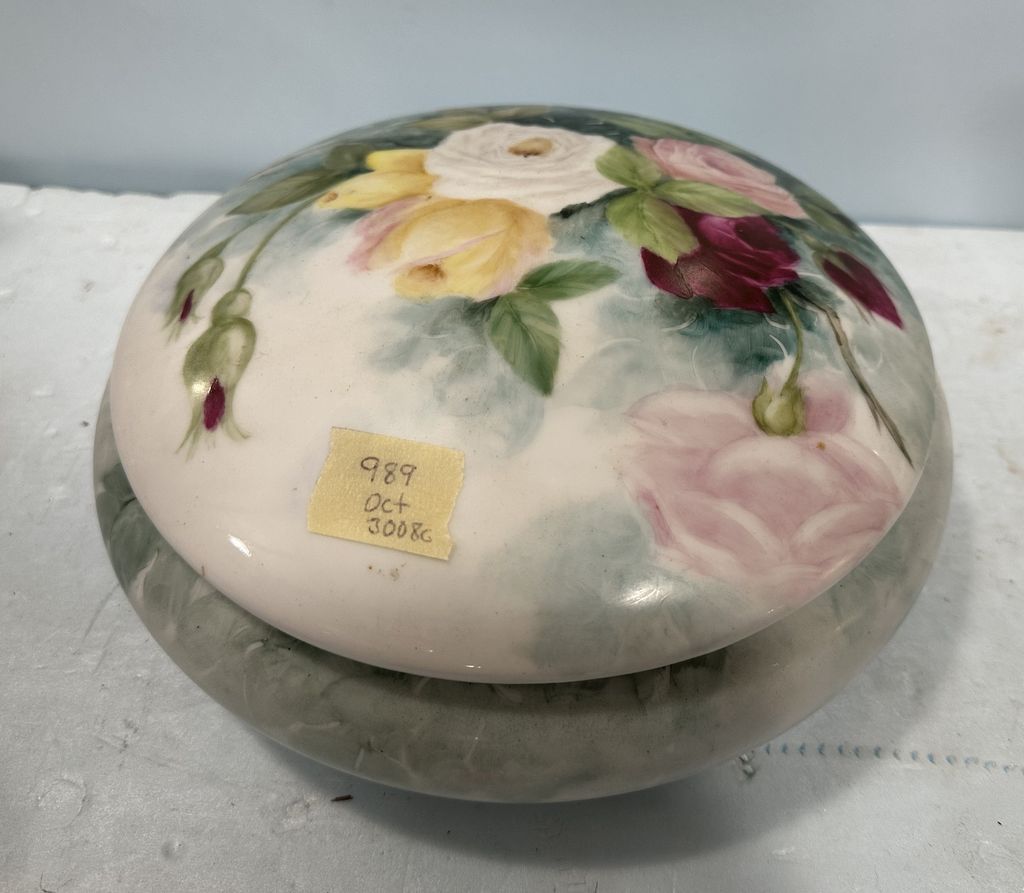 Limoges Rose Decorated Covered Bowl, 10"dia, Location Left Office 1 Limoges Rose Decorated Covered Bowl, 10"dia, Location Left Office 1