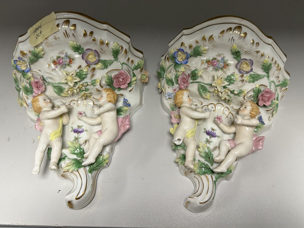 1044 Pair of Meissen Style Porcelain Wall Shelves