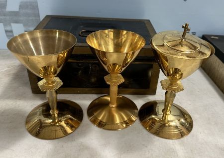 Three Gold Plated Chalices, with box, Location Left Office 1 Three Gold Plated Chalices, with box, Location Left Office 1