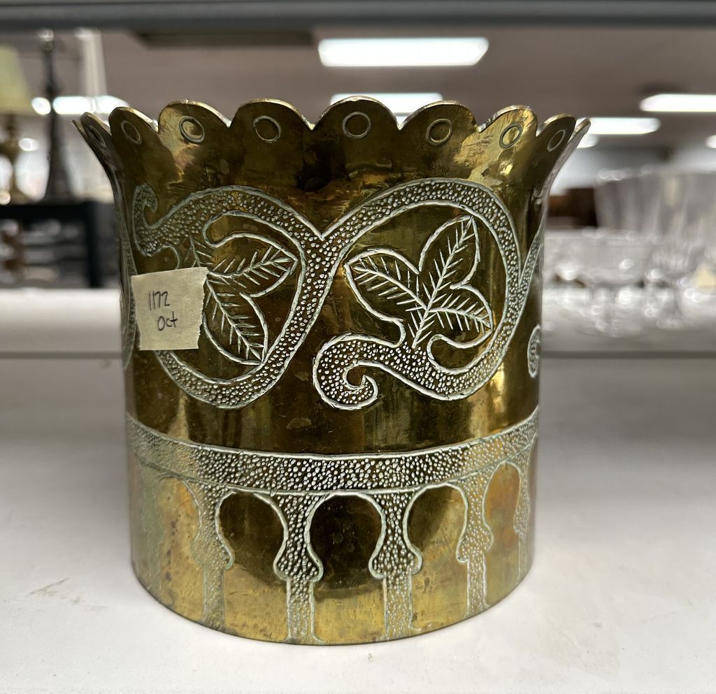 Decorative Brass Flower Pot, Location Right Metal Shelves Decorative Brass Flower Pot, Location Right Metal Shelves