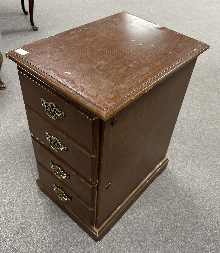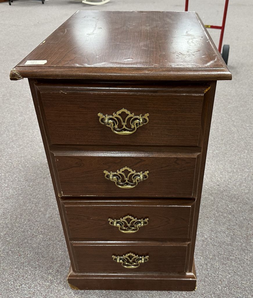 Particle Cherry Two Drawer File Cabinet, worn condition, Location Row 6 Particle Cherry Two Drawer File Cabinet, worn condition, Location Row 6