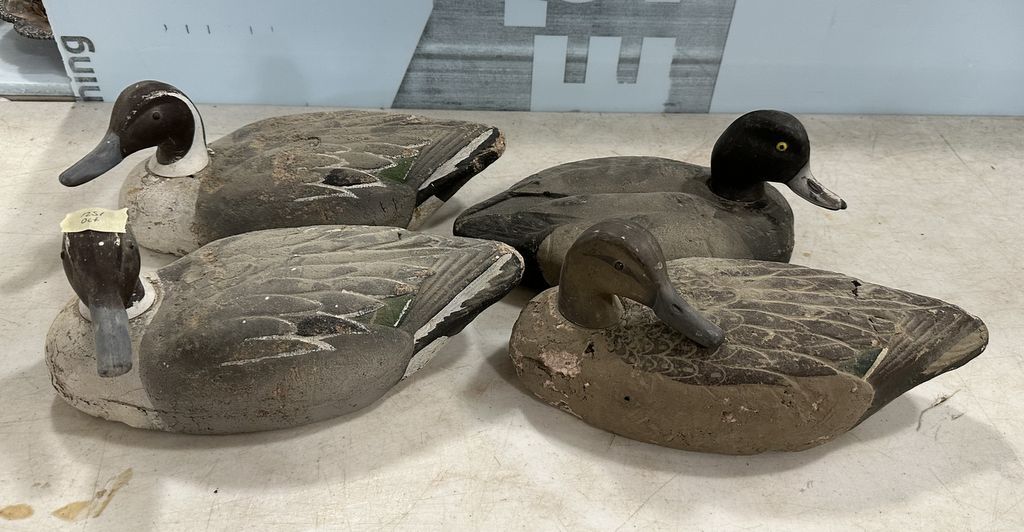 Four Vintage Foam Duck Decoys, Location Right Metal Shelves Four Vintage Foam Duck Decoys, Location Right Metal Shelves