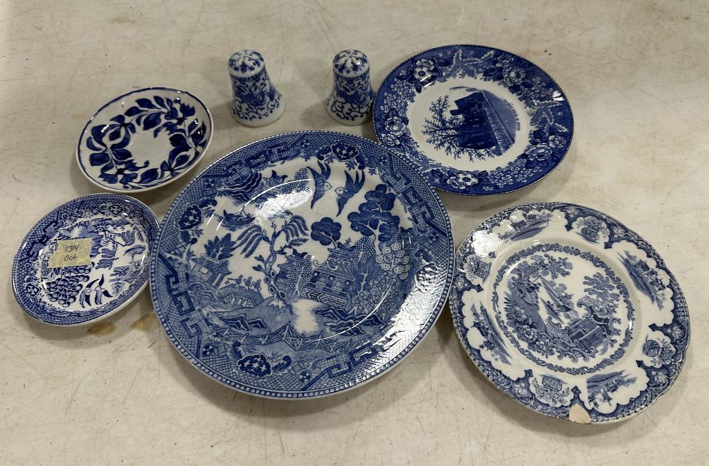 1314 Group of Blue and White Willow Style Porcelain