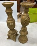 Two Gold Painted Candle Stands, 20"h, Location Right Metal Shelves Two Gold Painted Candle Stands, 20"h, Location Right Metal Shelves