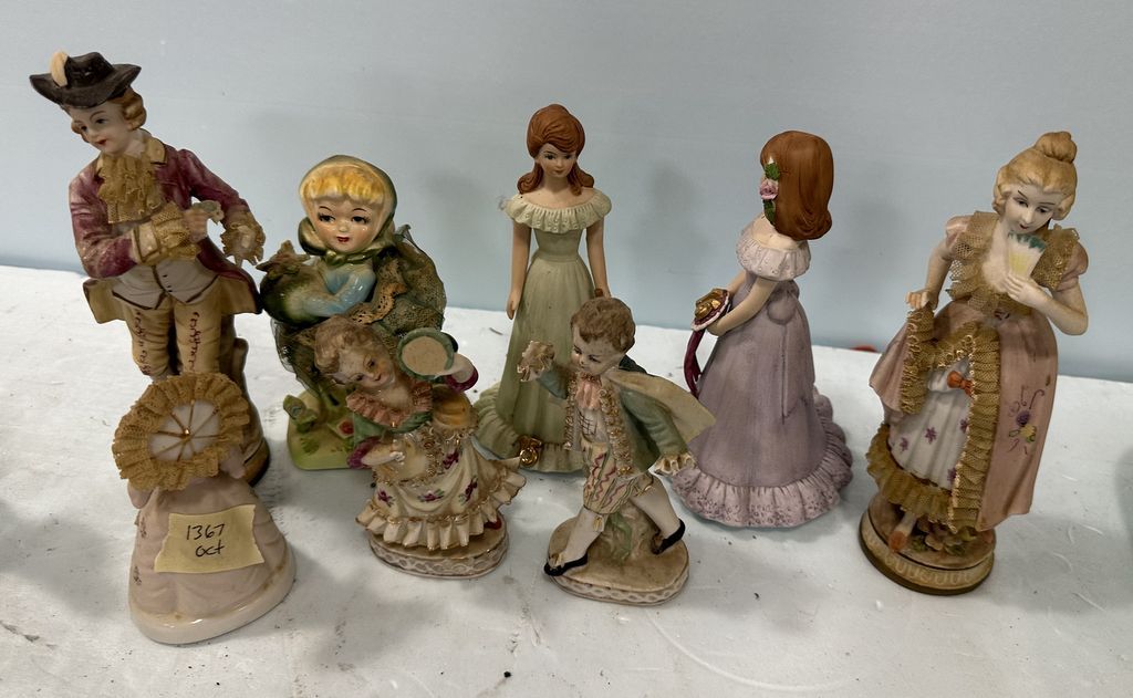 Group of Porcelain Vintage Figurines, Location Right Metal Shelves Group of Porcelain Vintage Figurines, Location Right Metal Shelves