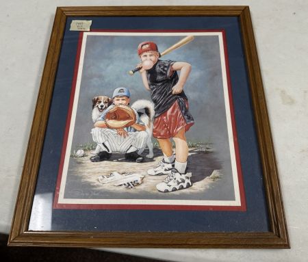 Wayne Neal Young Boys Playing Baseball, 16"h., 14"w, Location Right Metal Shelves Wayne Neal Young Boys Playing Baseball, 16"h., 14"w, Location Right Metal Shelves
