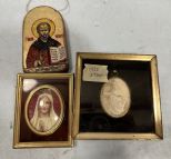 Religious Framed Artwork and Madonna, Location Left Metal Shelves Religious Framed Artwork and Madonna, Location Left Metal Shelves
