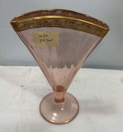 1434 Vintage Art Deco Pink Depression Glass Fan Vase