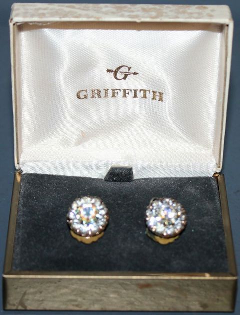 Pair of Weiss Earrings, rhinestone earrings; 1/2" dia. Pair of Weiss Earrings, rhinestone earrings; 1/2" dia.