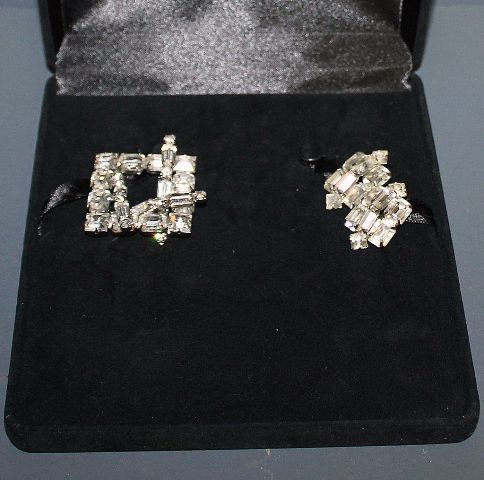 Large Weiss Set with Pin and Earrings, pin ( 1 1/2" square) matching earrings (7/8" w.) Large Weiss Set with Pin and Earrings, pin ( 1 1/2" square) matching earrings (7/8" w.)