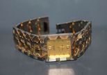 18 Carat Gold Bulova Watch, square face, diamond quartz, two small diamonds, 1" wide band, 8 1/2" l. 18 Carat Gold Bulova Watch, square face, diamond quartz, two small diamonds, 1" wide band, 8 1/2" l.