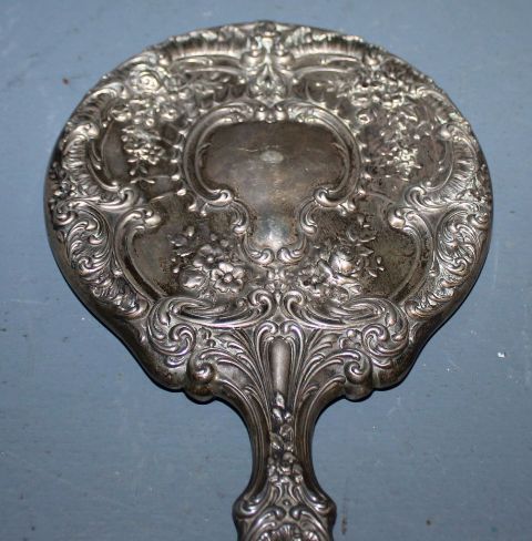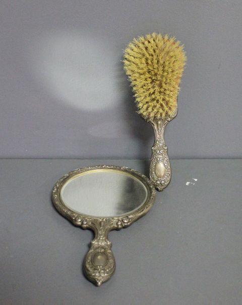 256 Gorham Sterling Silver Victorian Repousse Brush and Mirror