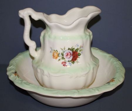 284 Ceramic Bowl and Pitcher with Painted Flowers