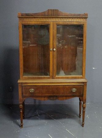 Hepplewhite Style China Cabinet, with two glass doors, drawer, two interior shelves; 37 1/2" w., 15" d., 69 1/2" h. Hepplewhite Style China Cabinet, with two glass doors, drawer, two interior shelves; 37 1/2" w., 15" d., 69 1/2" h.