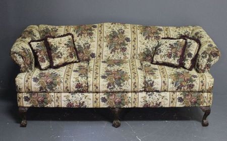Camel Back Sofa with Floral Fabric; 35" w., 34" d., 34" h. Camel Back Sofa with Floral Fabric; 35" w., 34" d., 34" h.