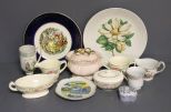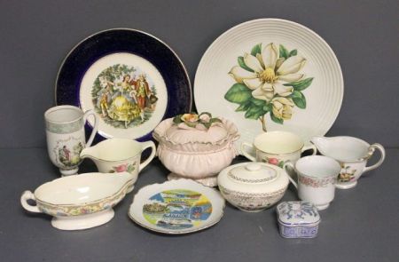 Group of Miscellaneous Porcelain Items, group includes; Imperial China cobalt plate 10 3/8" dia., vintage pink covered dish, Royal Norfolk charger 11 1/2" dia., cups and creamers, mug Group of Miscellaneous Porcelain Items, group includes; Imperial China cobalt plate 10 3/8" dia., vintage pink covered dish, Royal Norfolk charger 11 1/2" dia., cups and creamers, mug