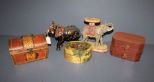Group of Decorative Items, group includes; elephant 8 1/2" w., oval box 6", treasure box 7" l., elephant candlestick 8' l. Group of Decorative Items, group includes; elephant 8 1/2" w., oval box 6", treasure box 7" l., elephant candlestick 8' l.